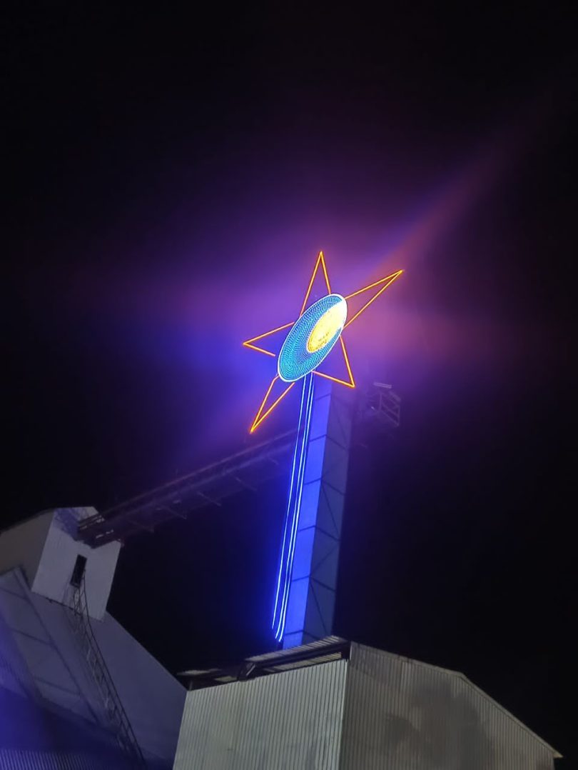 Este año, la estrella brilló más imponente que nunca, con más de 13 metros de altura, un nuevo diseño y moderna iluminación LED, completamente construida “en casa” por la Gerencia de Mantenimiento. (CNP 25.482)
