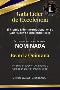 Acarigua.- La directora general de Portuguesa Reporta, Beatriz Quintana Mujica, ha sido nominada al prestigioso Premio Internacional “Líder de Excelencia” 2025, un galardón que se entrega en Orlando, Estados Unidos.