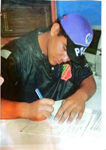 Néstor Corredor firmando su contrato Cerveceros de Milwaukee