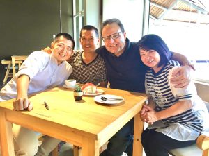 Con sus padres Luna, Huang y el periodista Eduardo Rodríguez Giolitti.
