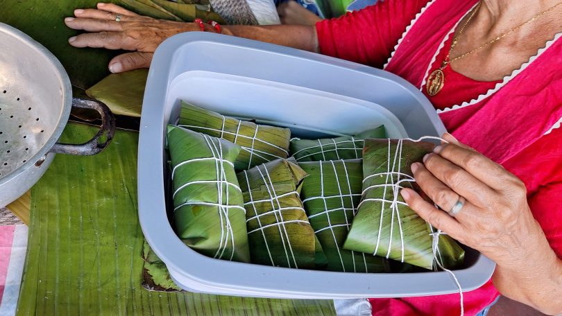 Lenis Linárez agradeció que este año nuevamente se reunió con su mamá, sus hermanas, sobrinos e hijas, para armar entre todos unas 100 hallacas, “donde todos colaboran”.
