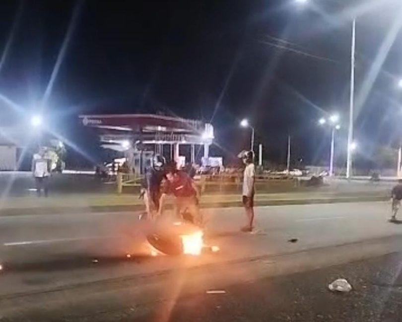 En el siniestro, la moto se incendió a consecuencia del impacto, mientras que el conductor, identificado como Carlos Sarmiento quedó tendido sobre el pavimento.