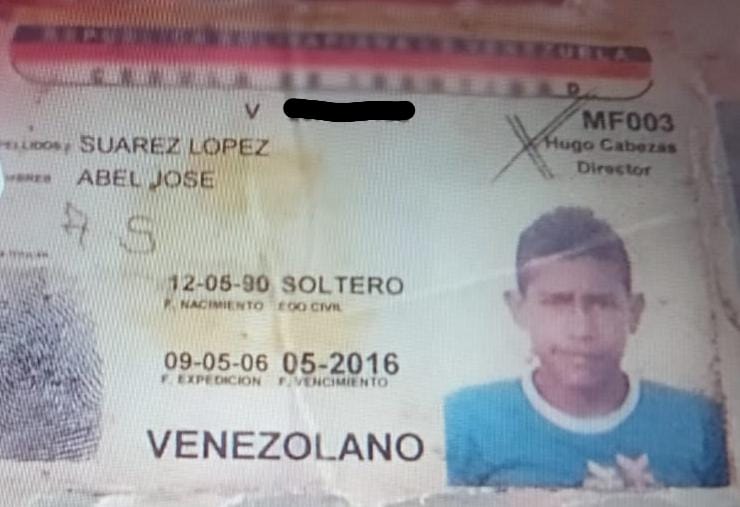 Las autoridades lograron identificarlo más tarde como Abel José Suárez López, de 35 años de edad.