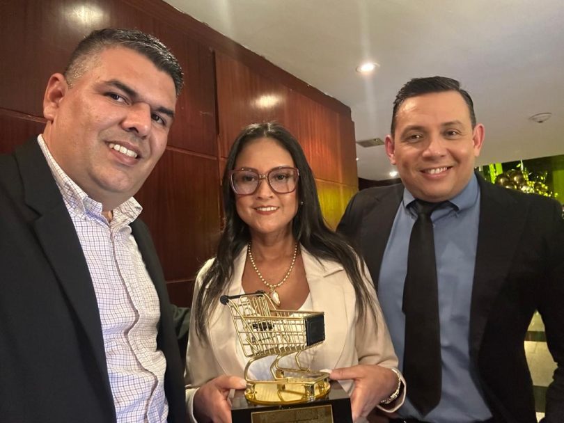 El equipo conformado por Jufranny Castillo, gerente general; Francisco Castillo, coordinador de compras y Juvert Sosa, director de marketing, asistió a la gala en nombre del hipermercado, para recibir el galardón.