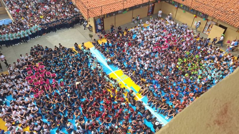 Toda la comunidad educativa, entre los 1.500 alumnos, con sus familias, vecinos y personal docente, lograron elevar sus corazones para agradecer y celebrar la excelente educación que reciben, en una caminata que recorrió 5 kilómetros, desde la cancha múltiple de Villa Araure, hasta la sede de la escuela.
