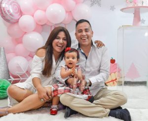 Con su hija Mariana Victoria y su esposo.